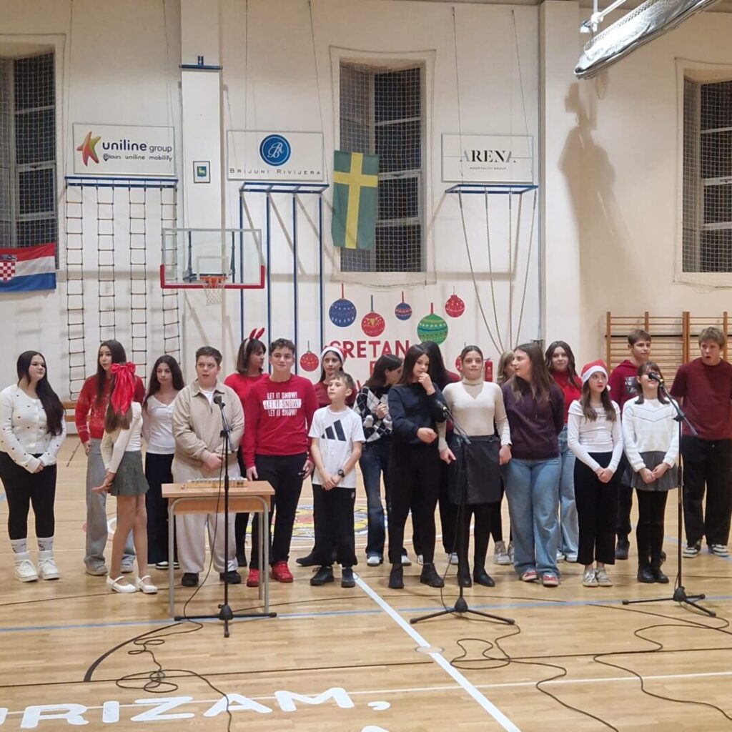 Publika je uživala u raznovrsnom kulturno-umjetničkom programu u kojem su sudjelovali učenici svih uzrasta. Školski zbor izveo je prigodne božićne pjesme, a posebno su se istaknuli i učenici koji su se predstavili solo pjevanjem. Veliko oduševljenje izazvale su brojne plesne točke, ponajviše učenika razredne nastave, koje su dvoranu ispunile veseljem i ritmom.